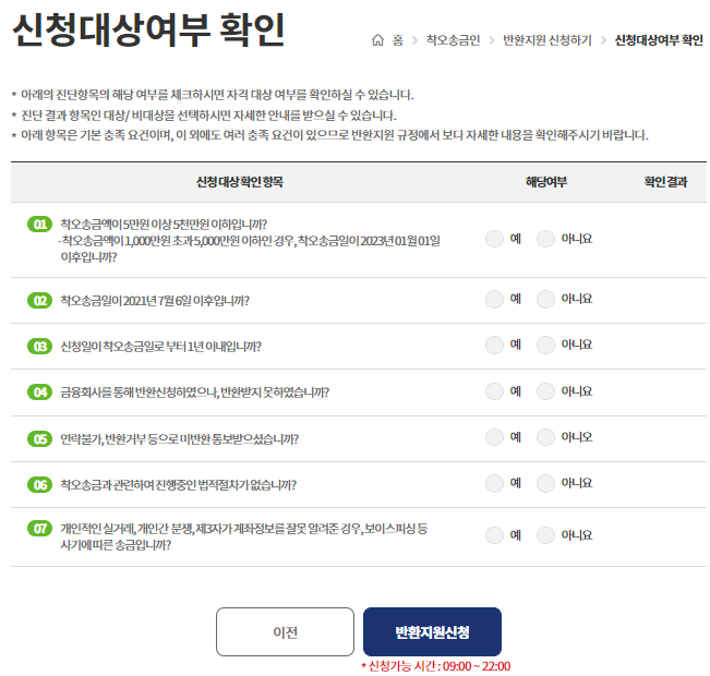 - 예금보험공사 착오송금반환지원정보시스템 홈페이지를 통해서 신청