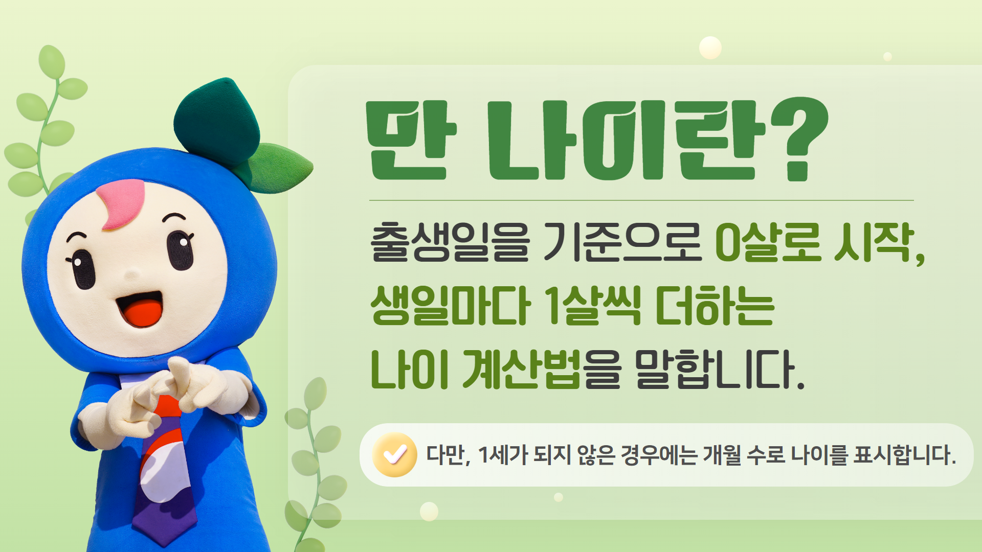 '만 나이'는 출생일 기준 0살로 시작하여, 생일이 지날 때마다 1살씩 더하는 방식으로 계산합니다.