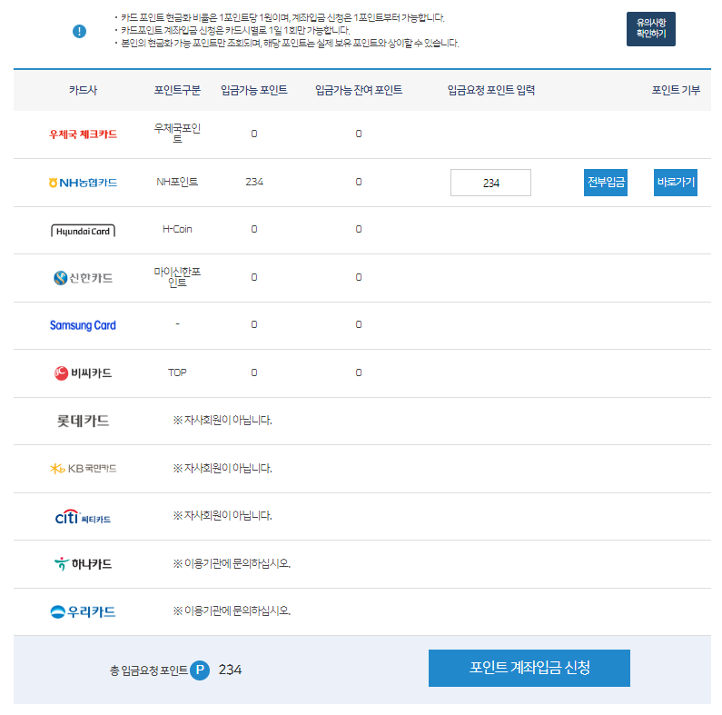 포인트 계좌입금 신청을 누르면 다음과 같은 화면이 뜹니다.