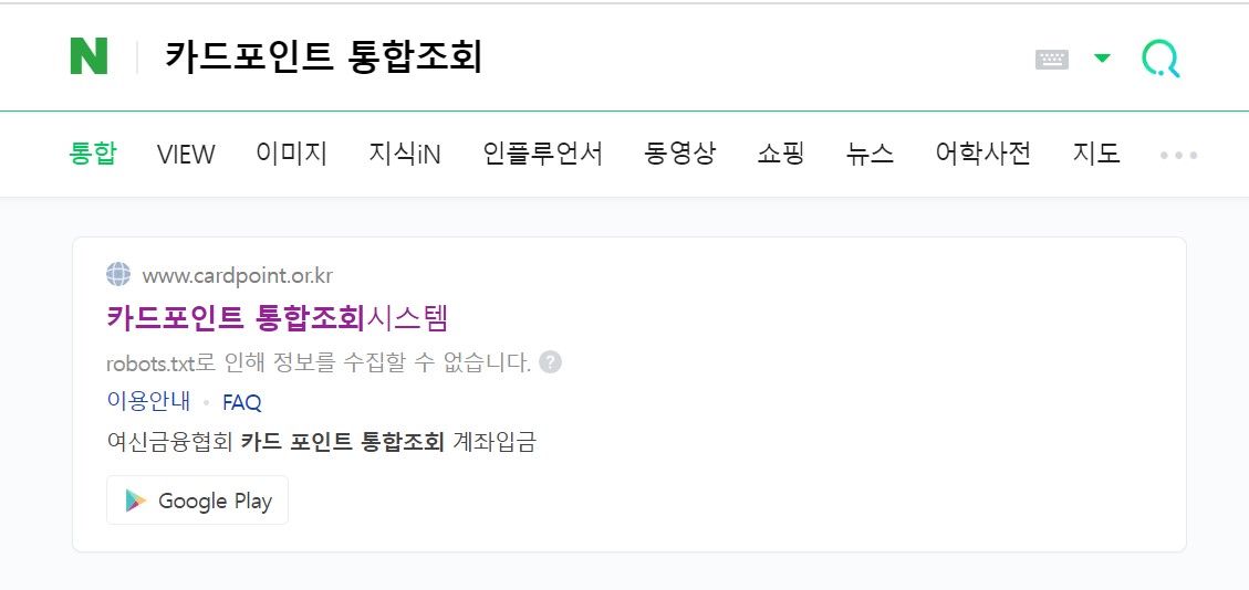 검색 창에 '카드포인트 통합조회' 라고 검색을 합니다.