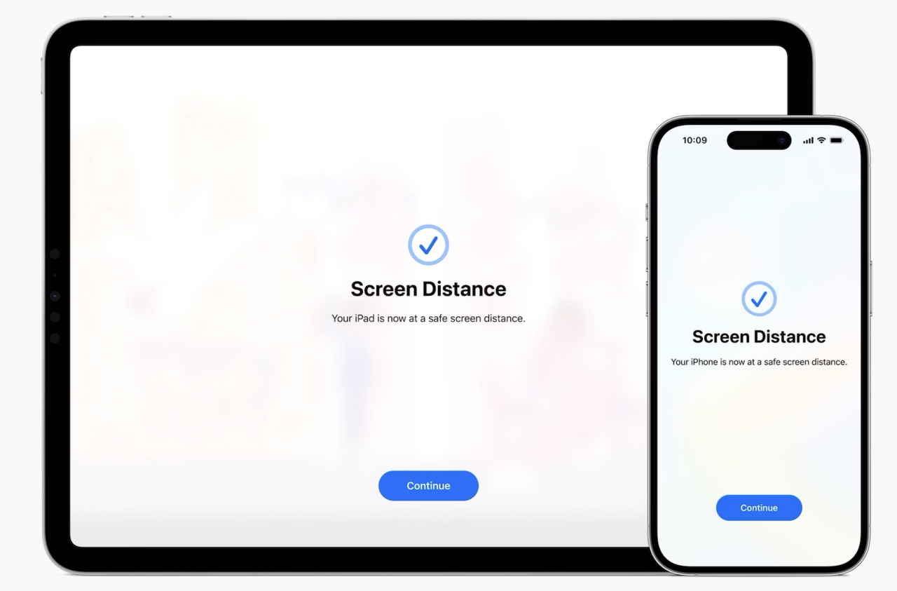 스크린 타임의 화면 주시 거리 기능은 TrueDepth 카메라를 활용해 사용자가 기기를 얼굴에서 30cm보다 가깝게 일정 시간 이상 들고 있으면 이를 감지하고 기기를 더 멀리 떨어트리라고 권유합니다.