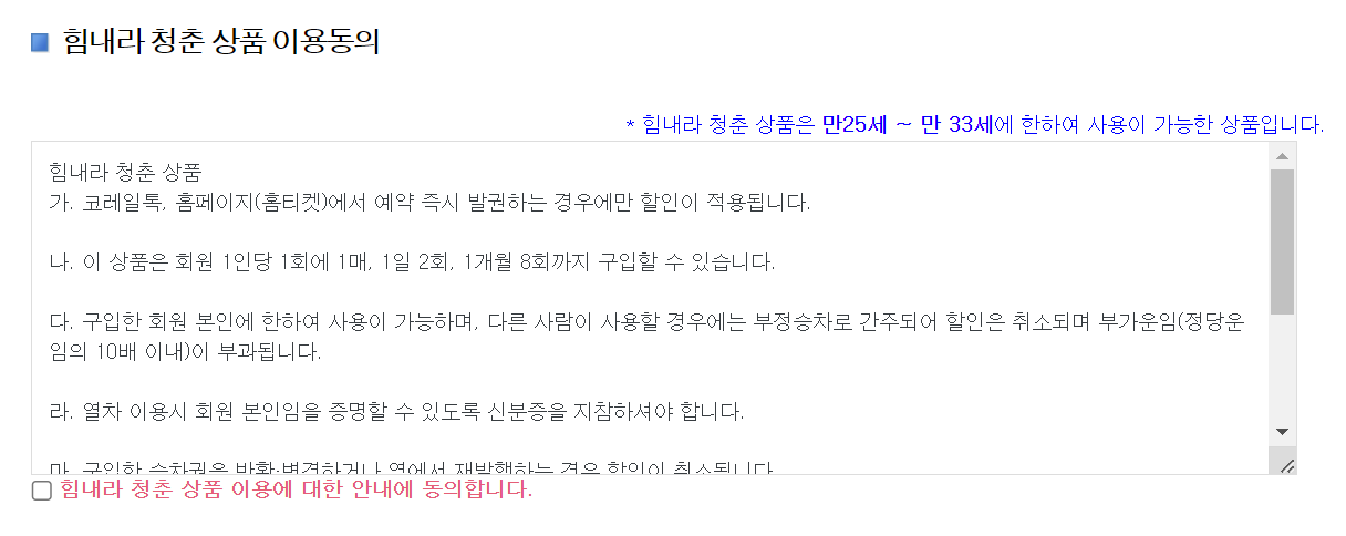 ▷ 힘내라청춘 : 만 25세 ~ 만 33세에 한하여 사용 가능한 상품