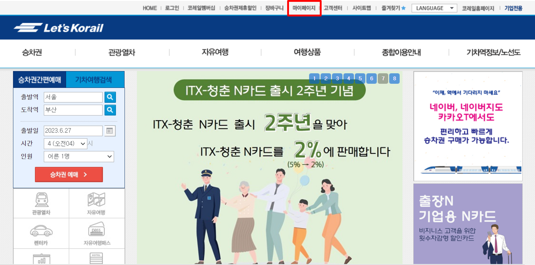 "레츠코레일"이라고 검색을 한 다음 사이트에 접속합니다.