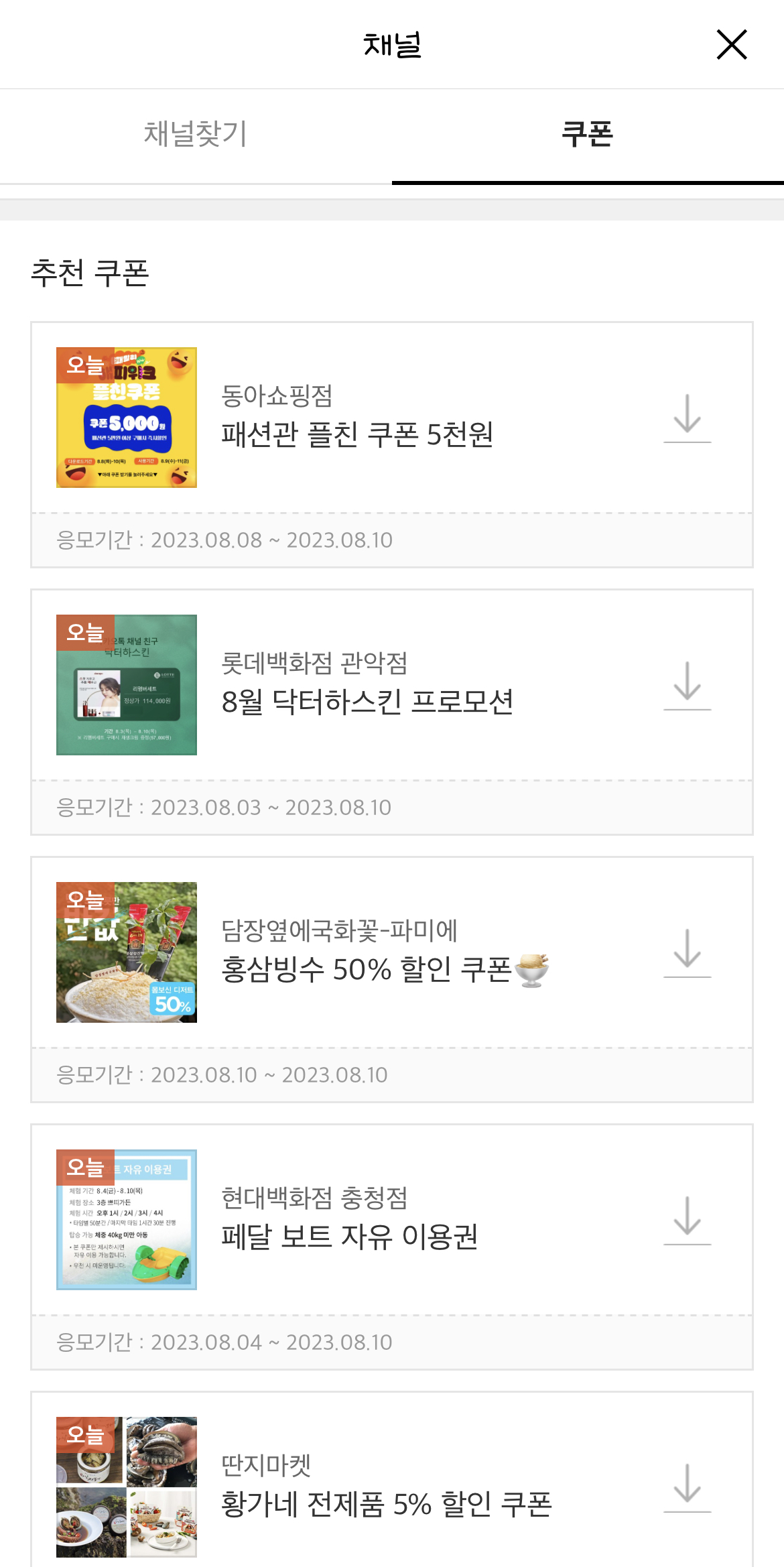 카카오톡 '채널'을 이용한 쿠폰받는 방법