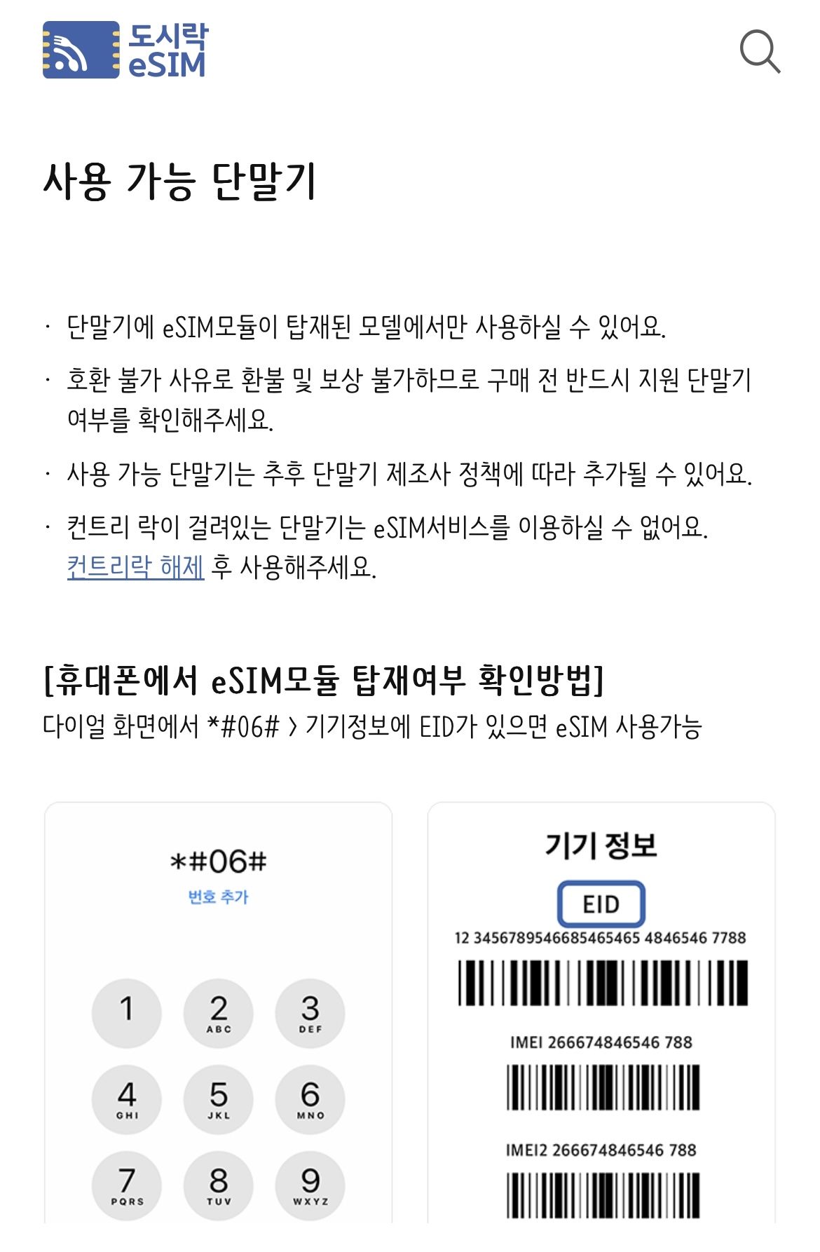 도시락eSIM 사용 가능 단말기