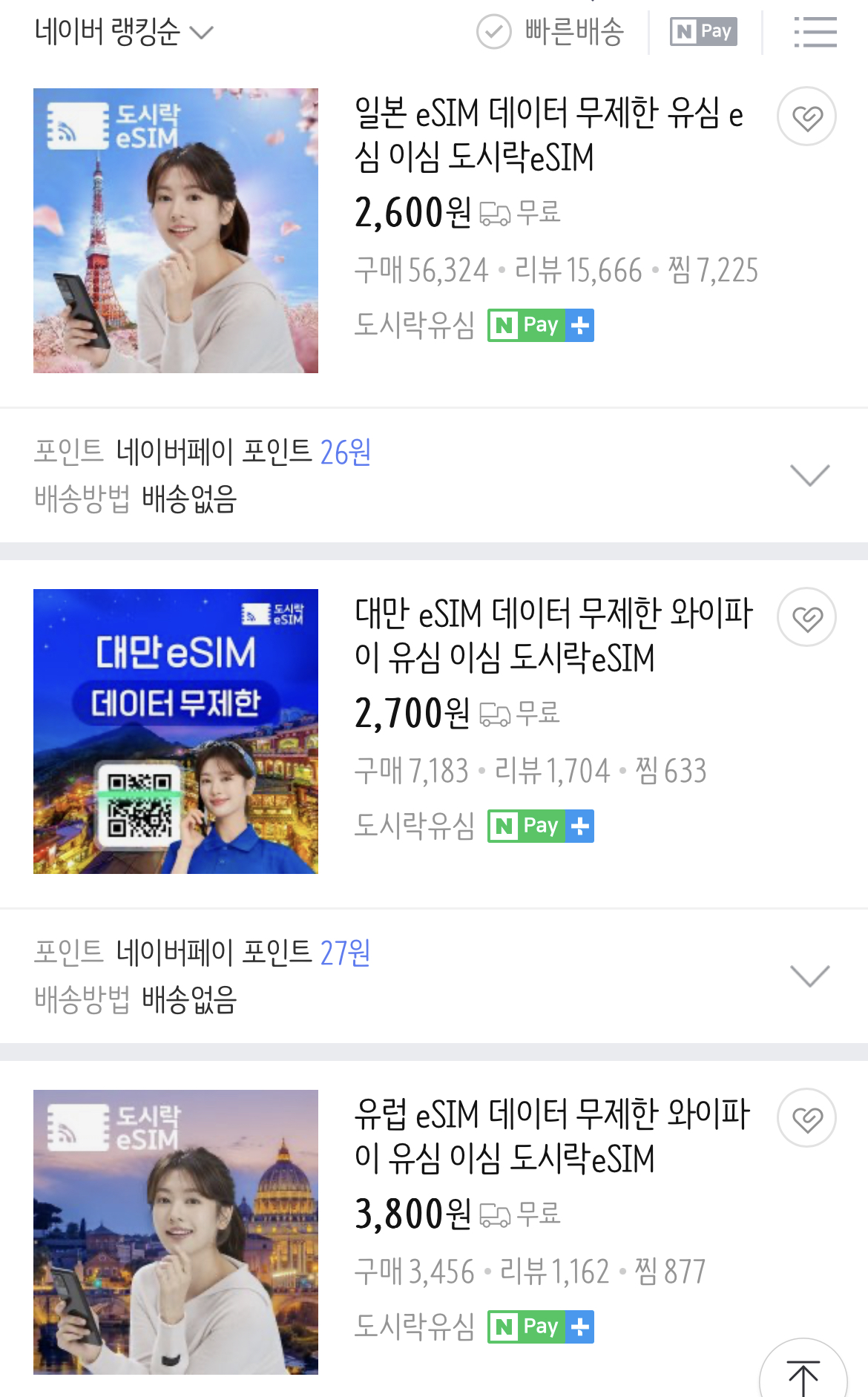 인터넷에 도시락eSIM을 검색한 후 여행갈 지역의 eSIM 상품을 선택해줍니다.