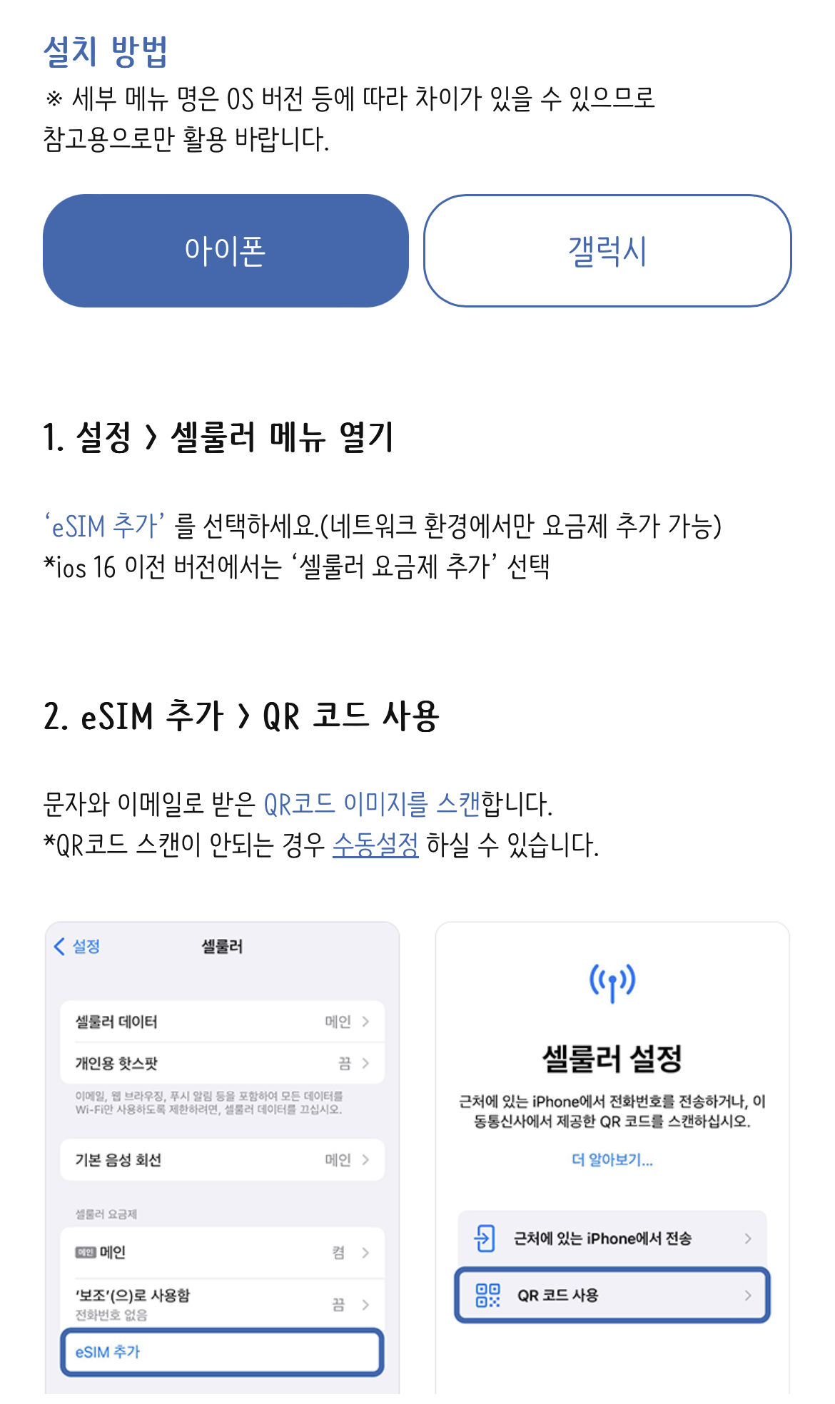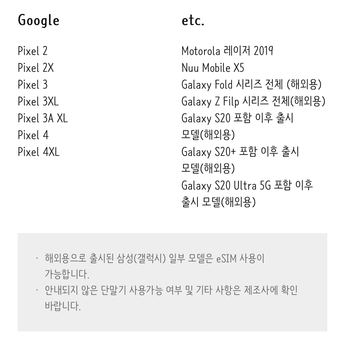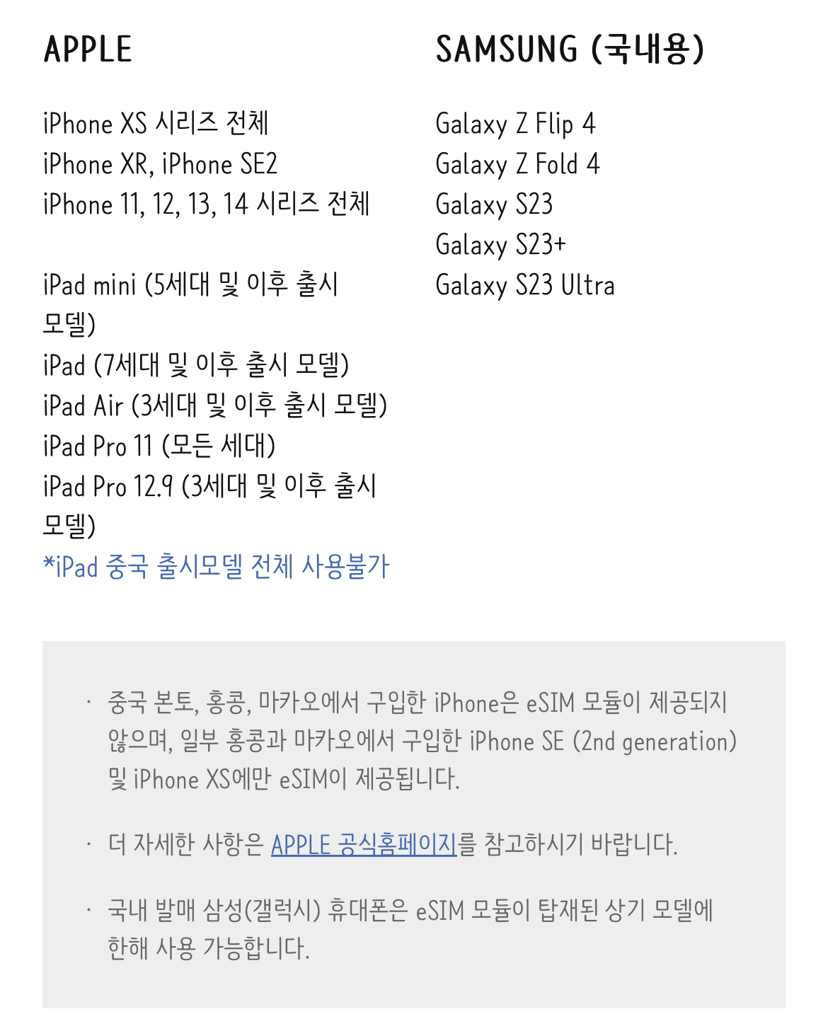 eSIM 사용가능 단말기: APPLE & SAMSUNG