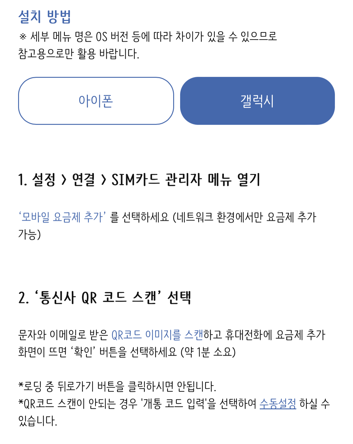 도시락eSIM 설치방법: 갤럭시
