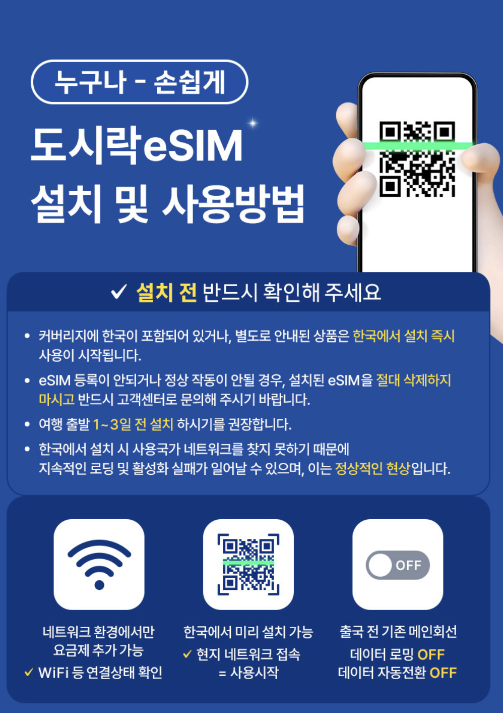 해외여행 시 여행갈 나라, 일 수, 상황을 고려하여 여러가지 방법 중 도시락eSIM이 유용하다고 판단되면 꼭 한 번 사용해보시길 바랍니다.