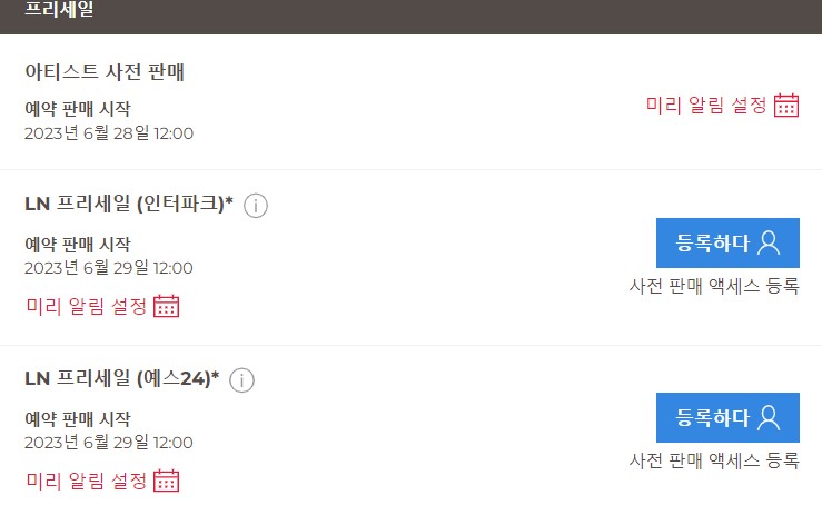 ▷ 라이브네이션 선예매는 다른 예매처에서 불가 & 라이브네이션 코리아 홈페이지를 통해서만 접근가능